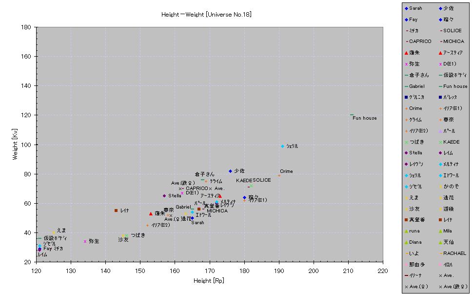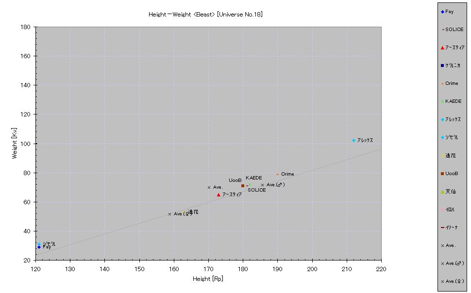 全体の平均:170.2Rp/70.0Kv => 169.9Rp/69.5Kv ヒューマノイド平均:167.8Rp/58.3Kv => 167.4Rp/58.1Kv [♂:185.6Rp/71.5Kv, ♀:158.8Rp/51.7Kv => 159.0Rp/51.9Kv] キャスト平均:174.6Rp/91.2Kv [♂:194.3Rp/123.1Kv, ♀:161.5Rp/69.8Kv]