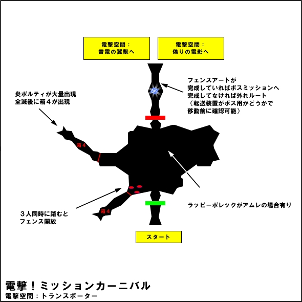 追加されたルートは雷敵の出る「電杖ステージ」と、炎敵の出る「炎撃ステージ」。 炎撃ステージは3人いないと進めません。