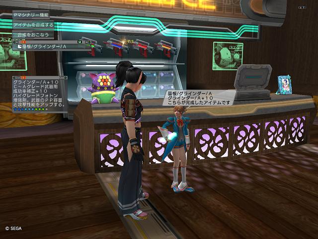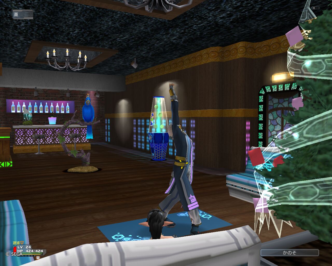 プレゼント自体は専用のグラフィックがありますので、鍵つきC部屋に床 置きするという「昔懐かしPSO方式」も、見た目には面白いかも知れま せんわ。ただ、床置き、店売り(プレゼントのまま売ることが出来ます) の場合はどちらも「中のアイテムの星(レアリティ)の数が表示される」 という点で風情がありませんわ…。 |