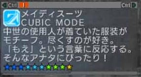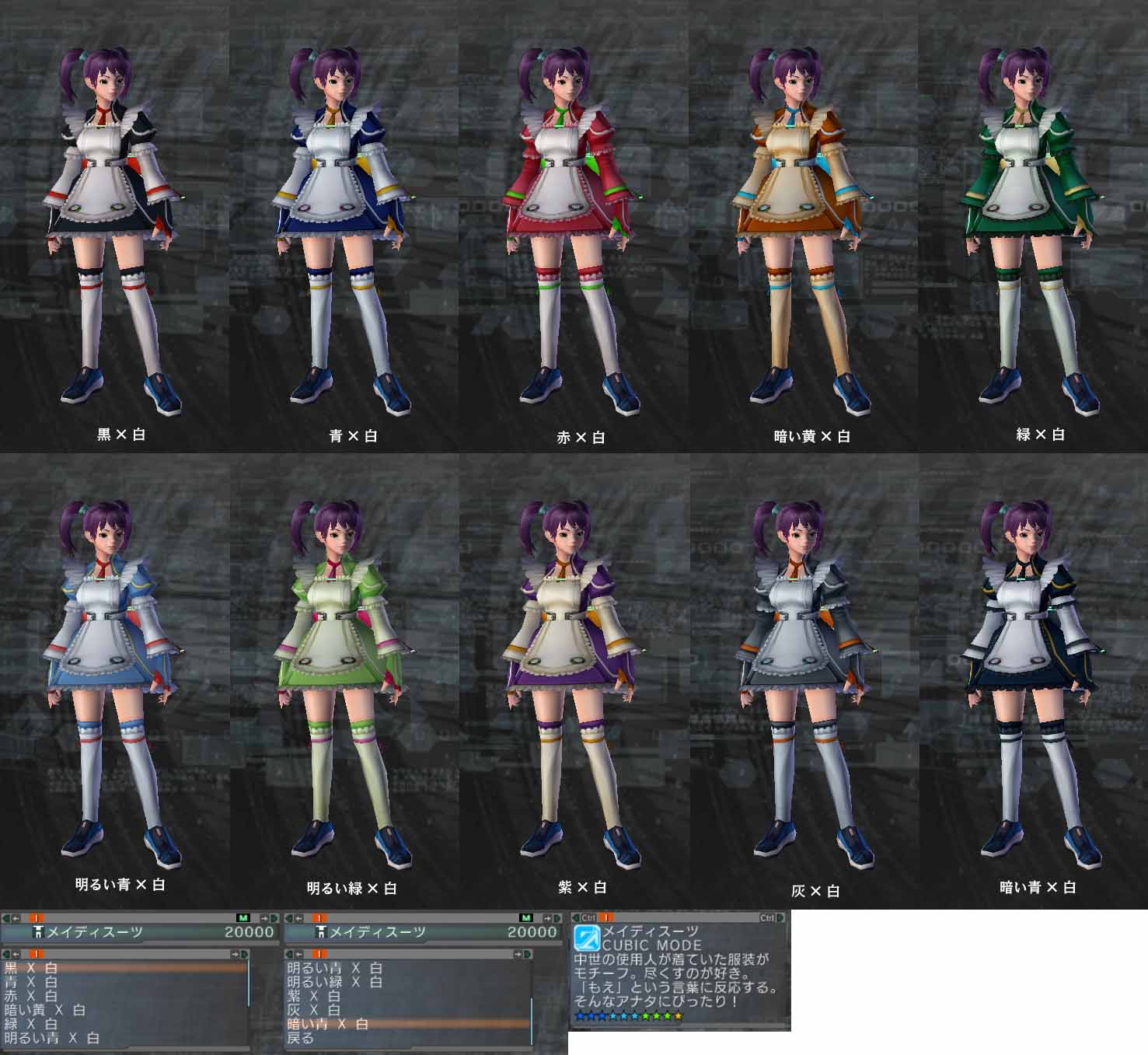 残念なことにオフのみ、ナマモノの皆様専用のコスですわw そのうちオンでも 販売するのでしょうか? 名前こそ「メイディスーツ」ですが、見た感じは「ファミレススーツ」ですので、 410系PMとペアルックするにはいいかもですわ♪