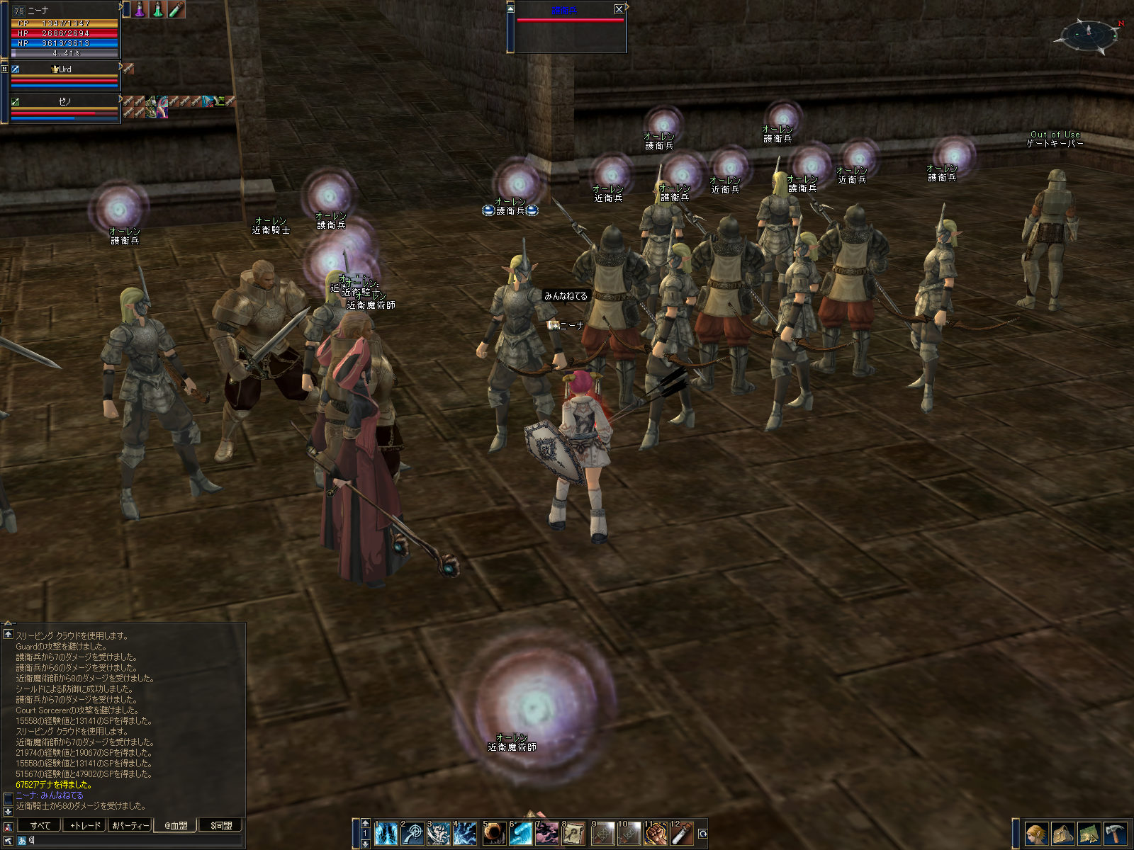 /invite (名前) 指定したキャラクターをパーティーに招待します。 /leave パーティーから脱退します。 /dismiss ターゲットしている対象をパーティーから追放します。 /leaderchange (名前) 指定したキャラクターにパーティーリーダー権限を移動させます。 /partyinfo 現在所属しているパーティーの情報を表示します。 /matching パーティーマッチを表示します。