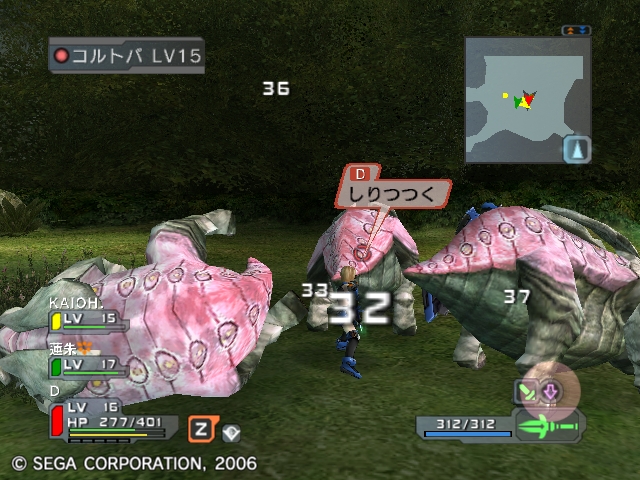 ・PSO伝統の噴出しチャットは健在ですが、チャットログ表示やシステム表示を